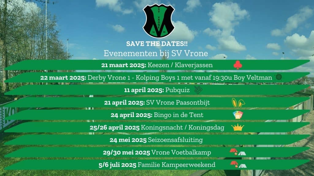 Hoe ziet straks onze nieuwe kantine eruit? Waar komt de bar, hoeveel tafels passen erin, en hoe laten we het écht Vrone ademen? Een enthousiaste werkgroep is inmiddels gestart met het bedenken van de inrichting en aankleding van de toekomstige kantine. Het doel: een gezellige, sfeervolle ontmoetingsplek waar iedereen zich thuis voelt: van kabouter tot veteraan. De werkgroep vraagt om ideeën van leden, jong én oud. Heb jij leuke suggesties voor inrichting of styling? Of ken je iemand met verstand van interieur of horeca? Deel hier je ideeën en voorkeuren.