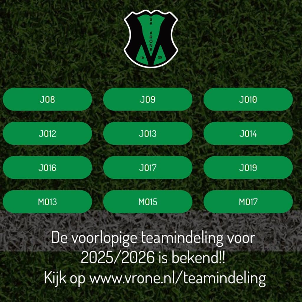 Wil jij dat jouw kind niet zichtbaar is in deze gepubliceerde lijsten, dan horen we dat graag via tc@sv-vrone.com. De naam van jouw kind wordt dan als afgeschermd op de lijst vermeld.